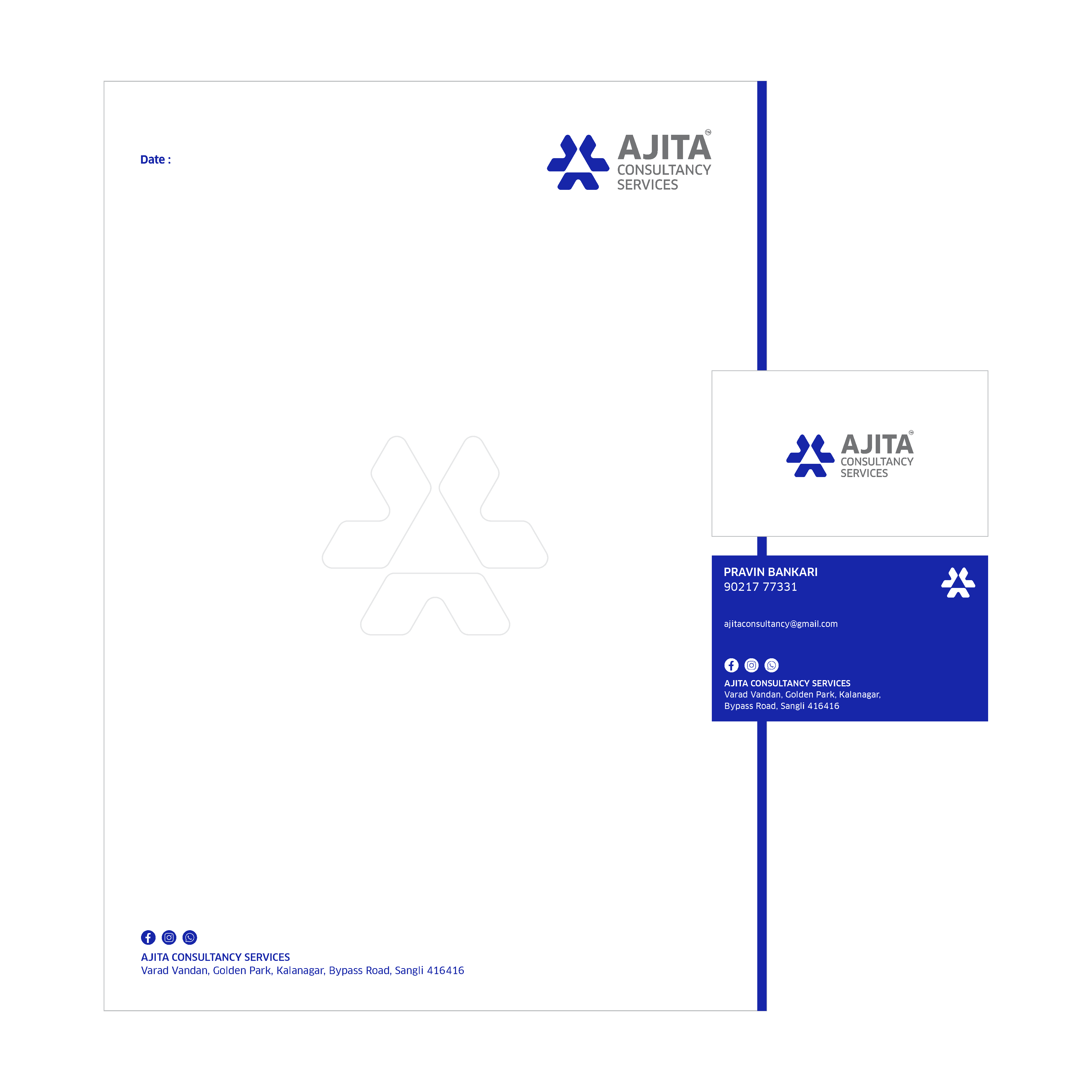 The logo for Ajita Consultancy Services is designed to represent trust, structure, and strategic guidance. The geometric symbol forms an abstract “A”, reflecting stability and collaboration, while the clean typography reinforces professionalism and clarity. The blue color palette signifies reliability and expertise, aligning with the brand’s commitment to delivering dependable consultancy solutions.