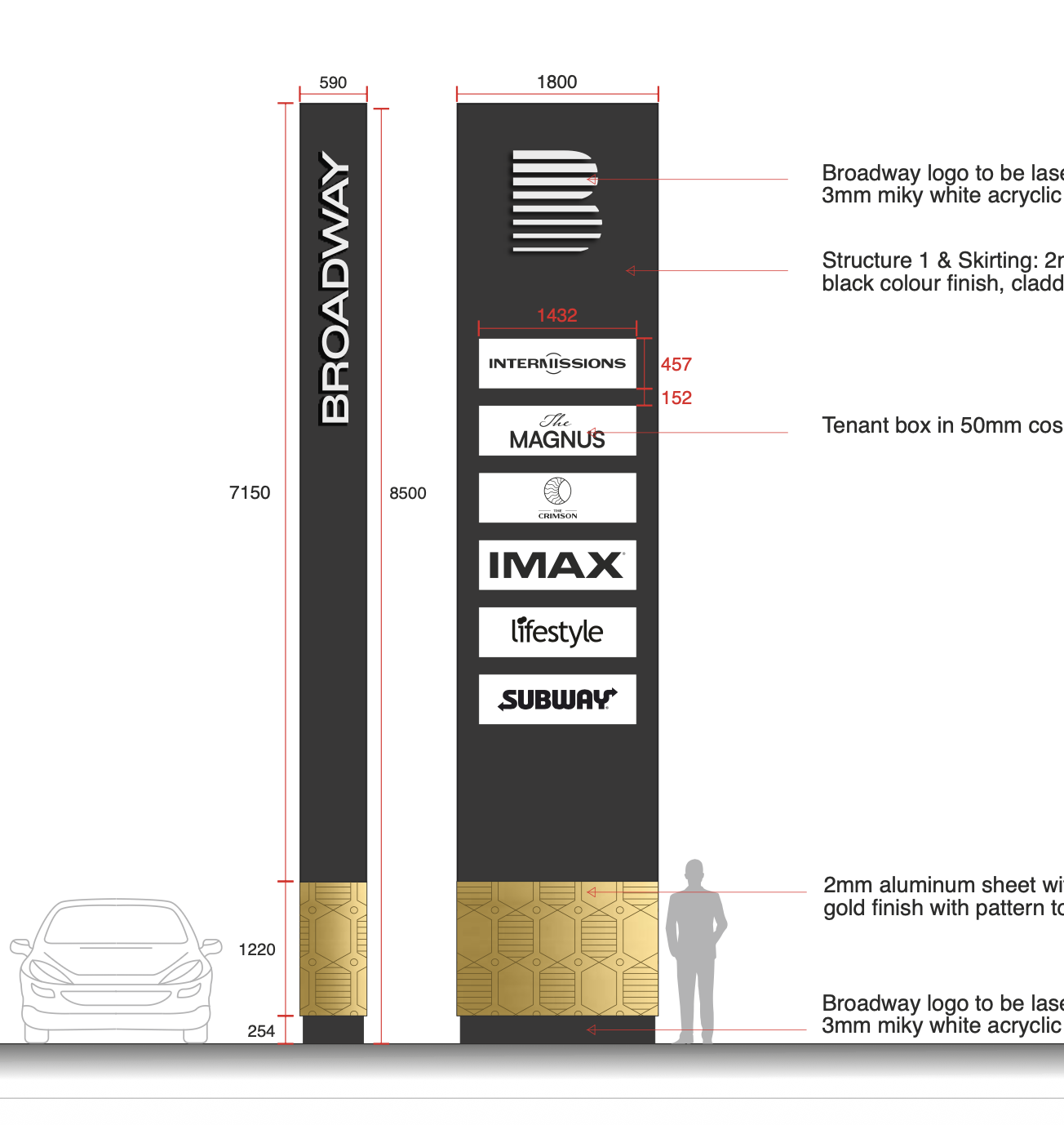 Client : Broadway Megaplex - Signage Program, Coimbatore.