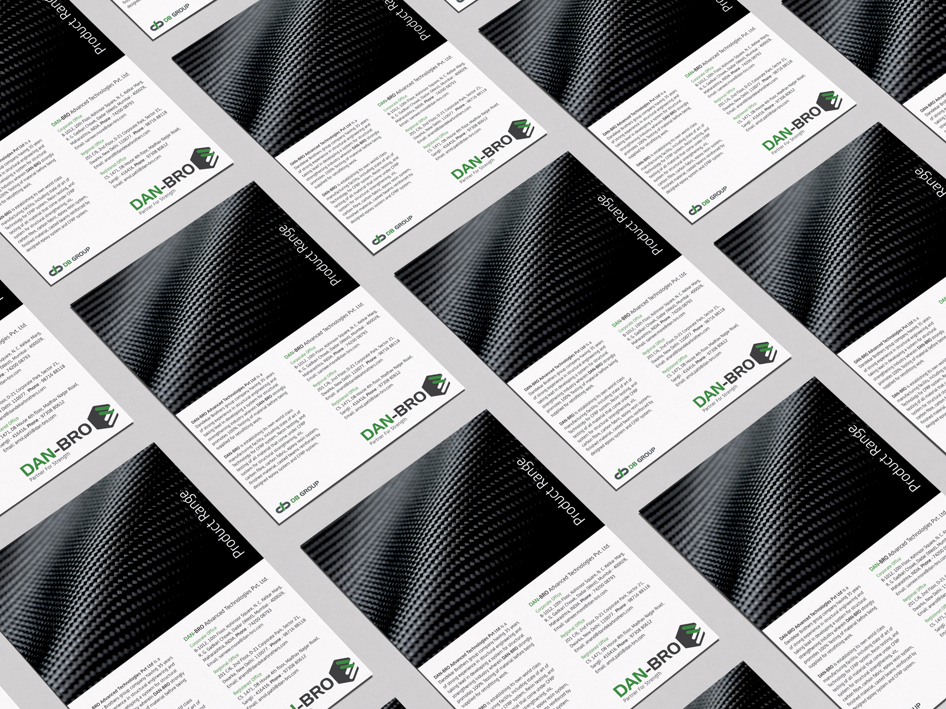The Danbro flyer is designed to reflect the brand’s focus on advanced construction materials and structural strengthening solutions. The graphics use a clean, technical visual language with strong typography and balanced layouts to communicate innovation and reliability. The design ensures that complex product information is presented in a clear, professional, and visually engaging manner.