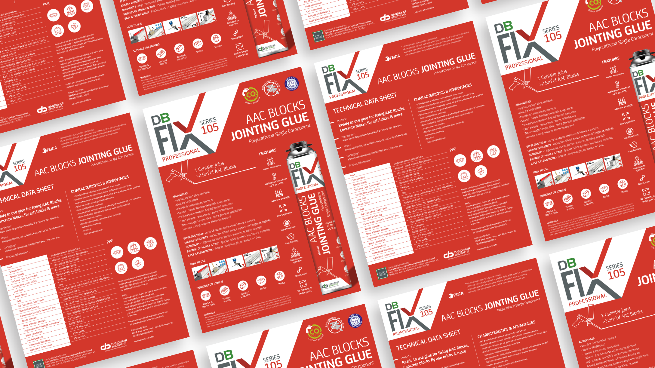 The flyer design for DB Fix is created to communicate product performance with clarity and impact. Using bold colors, strong typography, and a structured layout, the design ensures quick understanding of product benefits while maintaining a professional industrial appeal. The visual approach reinforces the brand’s promise of strength, reliability, and precision.