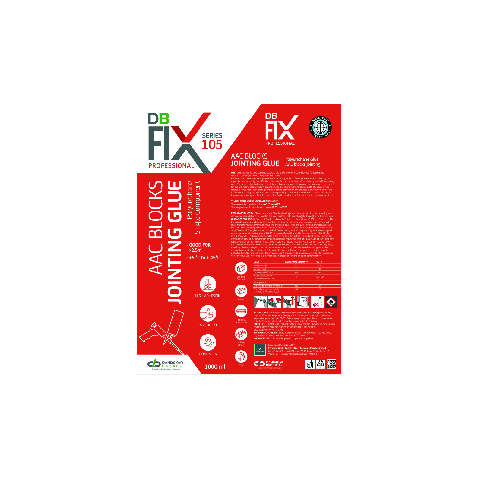 The DB Fix packaging is designed to visually communicate strength, reliability, and precision—qualities essential to a high-performance sealant brand. The bold color blocking and sharp typography create strong shelf visibility, while the structured information layout enhances usability for professionals. The overall design reflects durability and technical efficiency, aligning with the product’s promise of a strong and lasting bond.