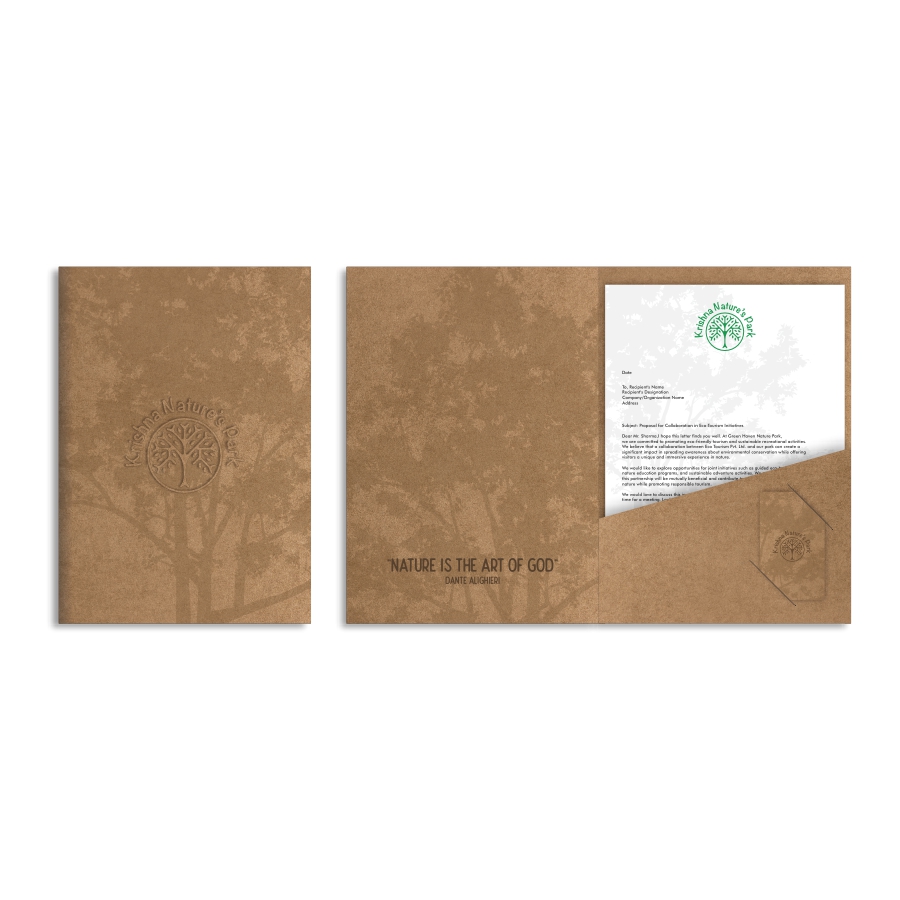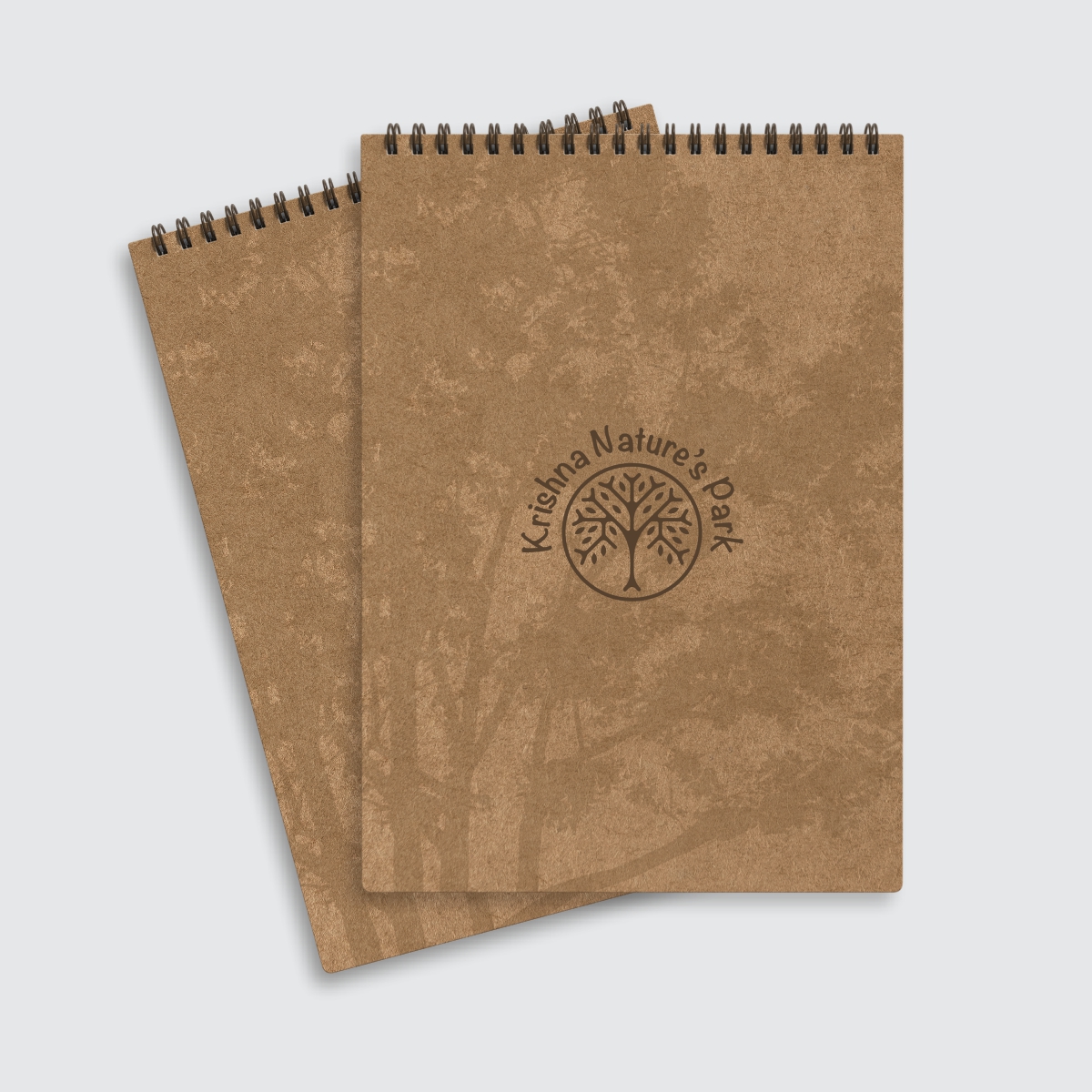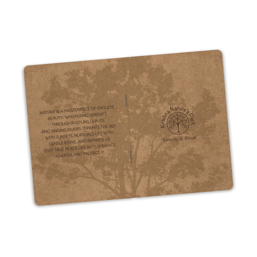 Krishna Nature’s Park stationery and merchandise were designed to reflect the park’s core philosophy of sustainability, learning through nature, and environmental sensitivity. The use of craft paper textures, earthy tones, and minimal graphics creates a raw and honest visual language that connects users directly to the natural theme of the park. The material palette was intentionally kept organic to evoke a sense of authenticity and responsibility towards the environment. The design approach avoids excessive finishes, instead celebrating simplicity, tactile quality, and natural imperfections. Overall, the stationery becomes an extension of the park experience, reinforcing the idea that design and nature can coexist in a thoughtful and sustainable way.