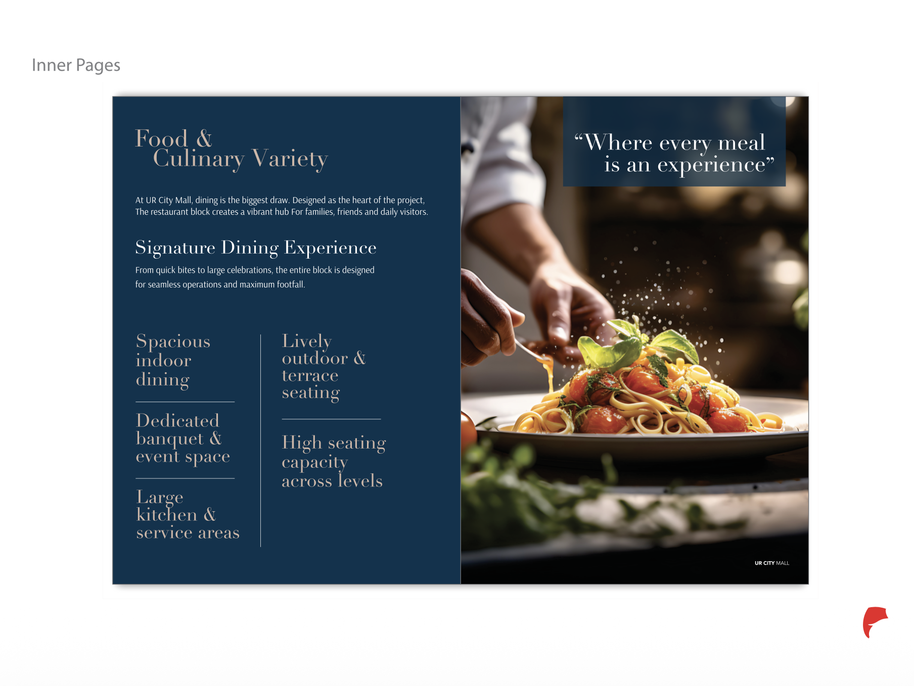 The UR City Mall brochure is designed to reflect the project’s vision of creating a vibrant lifestyle destination. The layout balances modern aesthetics with clear information hierarchy, ensuring that retail, entertainment, and community aspects are presented seamlessly. The visual language uses clean typography, structured grids, and engaging imagery to communicate the mall’s scale and experience. Overall, the design aims to create a strong first impression while making the information easily accessible to investors, tenants, and visitors.